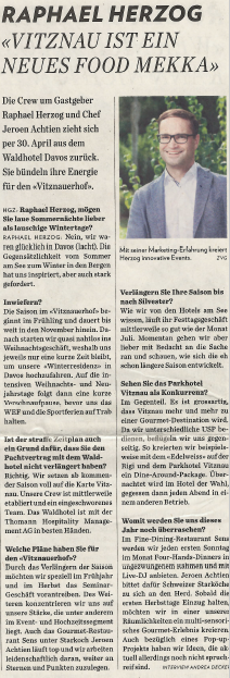 Hotellerie Gastronomie Zeitung: «Exklusives Erlebnis bedient alle Sinne»