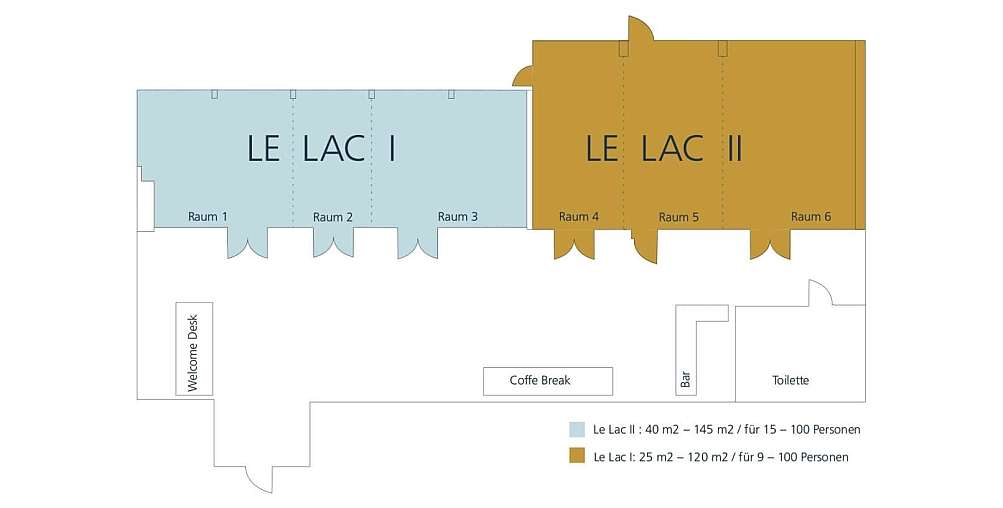 Le Lac I: 25 m² – 120 m² / für 9 – 100 Personen