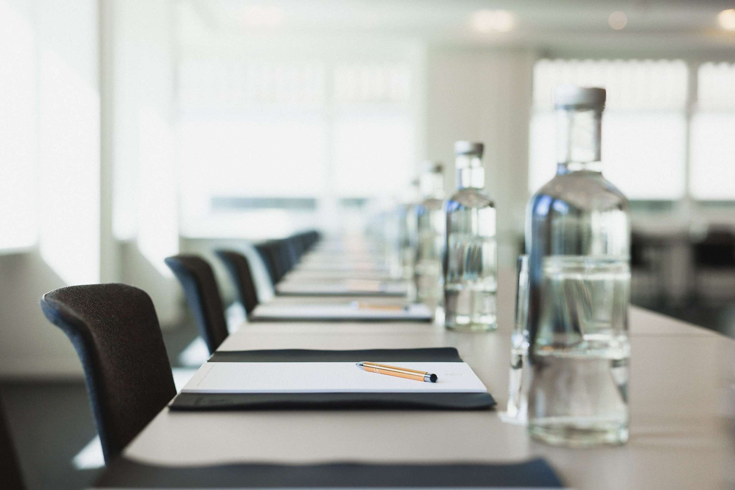 Mineralwasser und Fruchtsäfte im Seminarraum