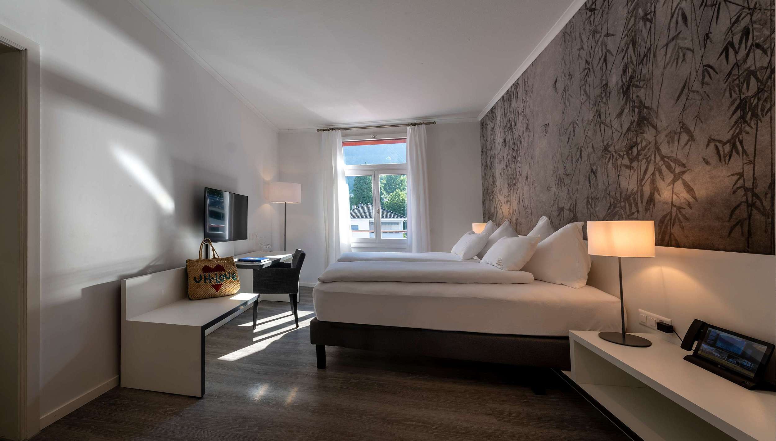 Geniessen Sie einen unvergesslichen Aufenthalt in unseren stilvoll eingerichteten Doppelzimmern, die mit modernen Annehmlichkeiten ausgestattet sind und eine perfekte Kombination aus Komfort und Eleganz bieten. Die grossen Fenster ermöglichen es Ihnen, die Schönheit der Natur direkt von Ihrem Zimmer aus zu bewundern, während Sie sich entspannen und erholen. Ob für einen romantischen Kurzurlaub oder einen erholsamen Familienausflug, unsere Doppelzimmer sind der ideale Rückzugsort, um die malerische Umgebung in vollen Zügen zu geniessen.