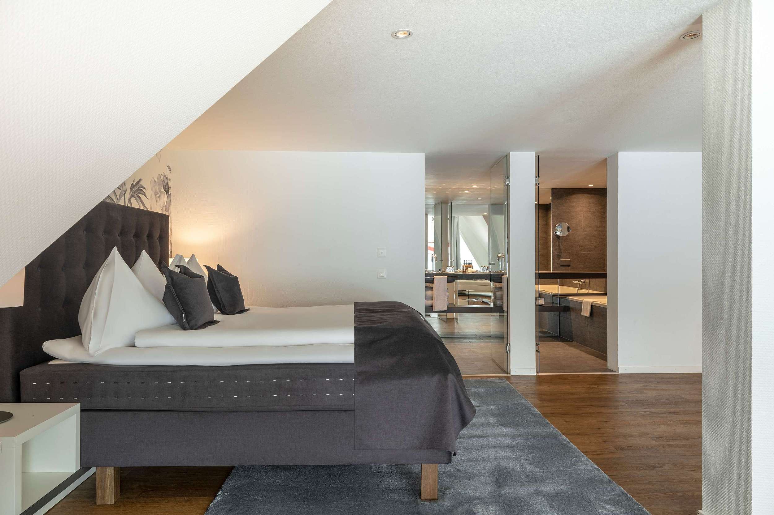 Einfach geniessen – das ist unser Motto. In dieser stilvollen Suite erleben Sie einen einzigartigen Wohngenuss, der speziell für die schönen Momente des Lebens geschaffen wurde. Ob für Verliebte, Verlobte oder Verheiratete, wir erfüllen Ihre Wünsche, ermöglichen Ihre Träume und sorgen für unvergessliche Glücksgefühle, die Sie in jedem Augenblick spüren werden.